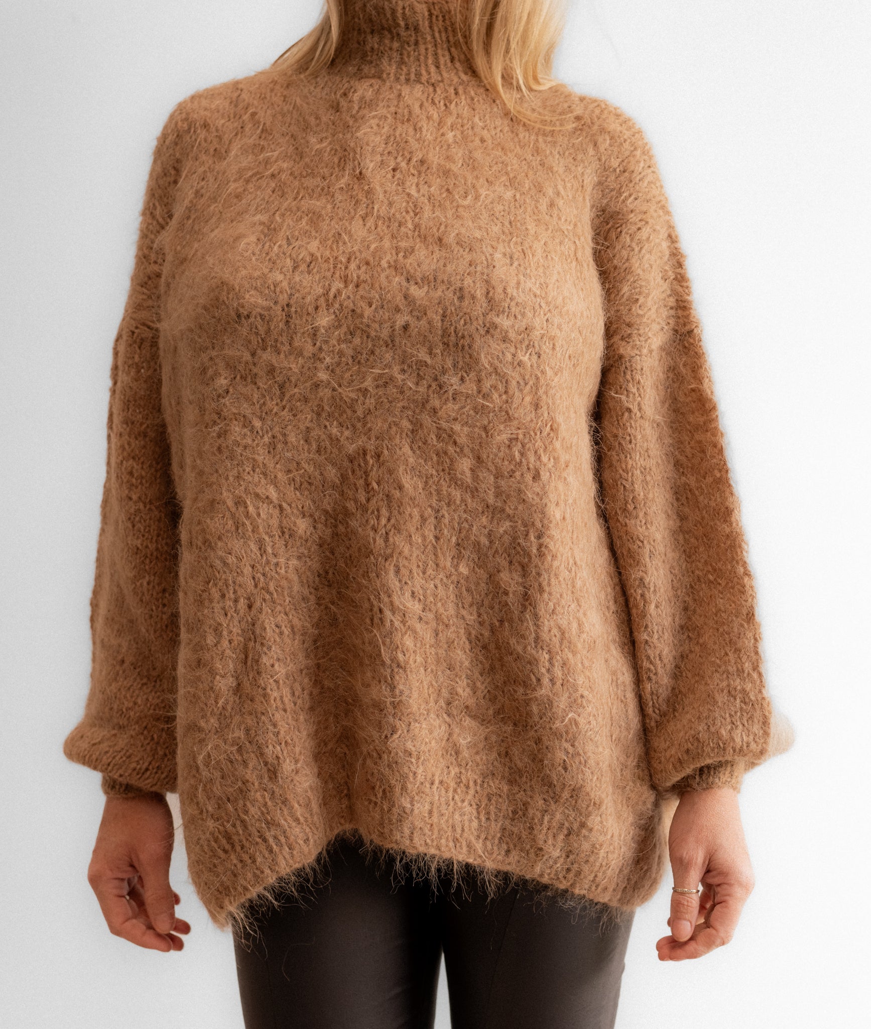 Our oversized knits  have a boxy, relaxed oversized fit.